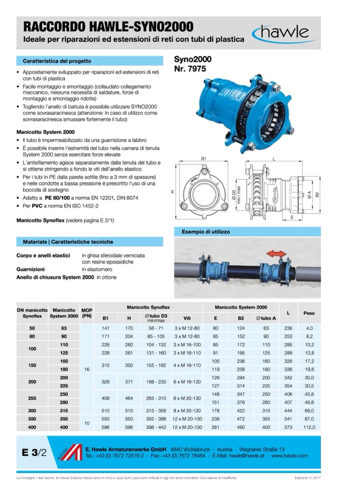 Manicotto Synoflex (vedere pagina E 2/1)