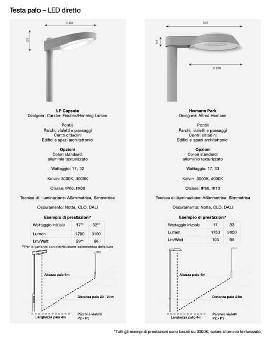 *Tutti gli esempi di prestazioni sono basati su 3000K, colore alluminio texturizzato