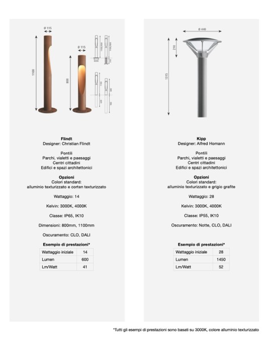 *Tutti gli esempi di prestazioni sono basati su 3000K, colore alluminio texturizzato