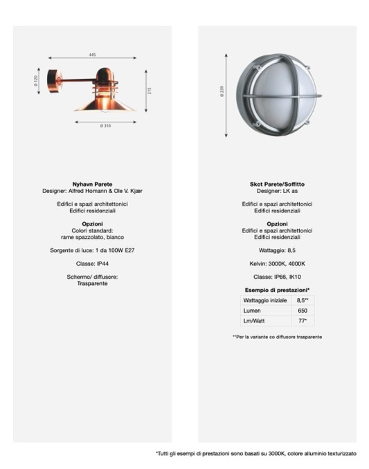 *Tutti gli esempi di prestazioni sono basati su 3000K, colore alluminio texturizzato