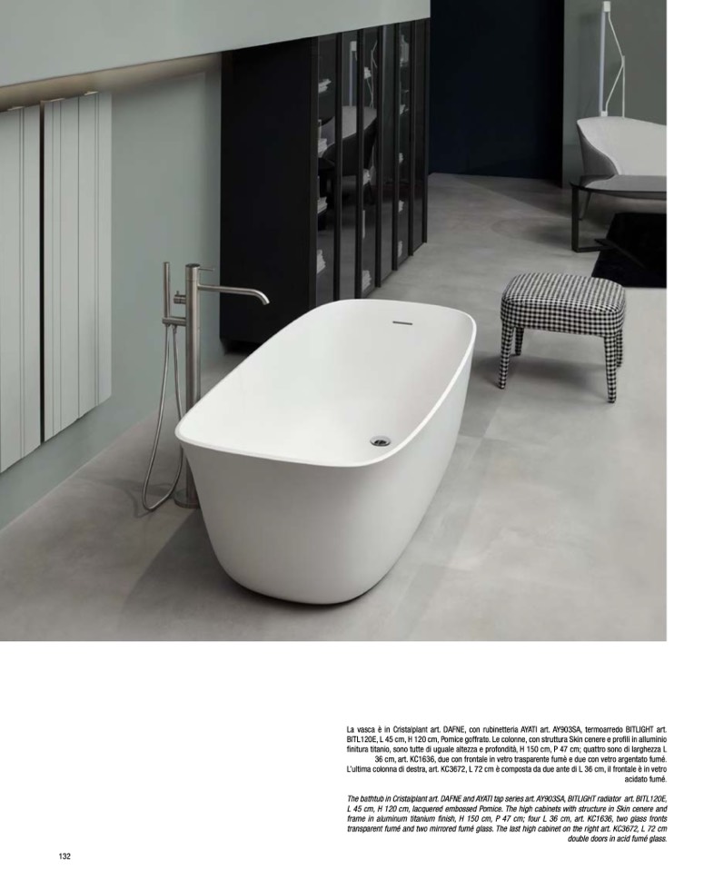 The bathtub in Cristalplant art. DAFNE and AYATI tap series art. AY903SA, BITLIGHT radiator art. BITL120E,