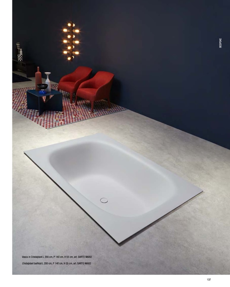 Vasca in Cristalplant L 200 cm, P 140 cm, H 55 cm, art. SARTO MAXI2