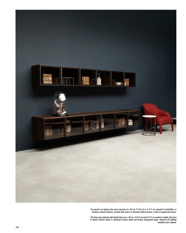 in Rovere thermo frame in aluminum bronze finish and bronze transparent glass. Internal LED lighting