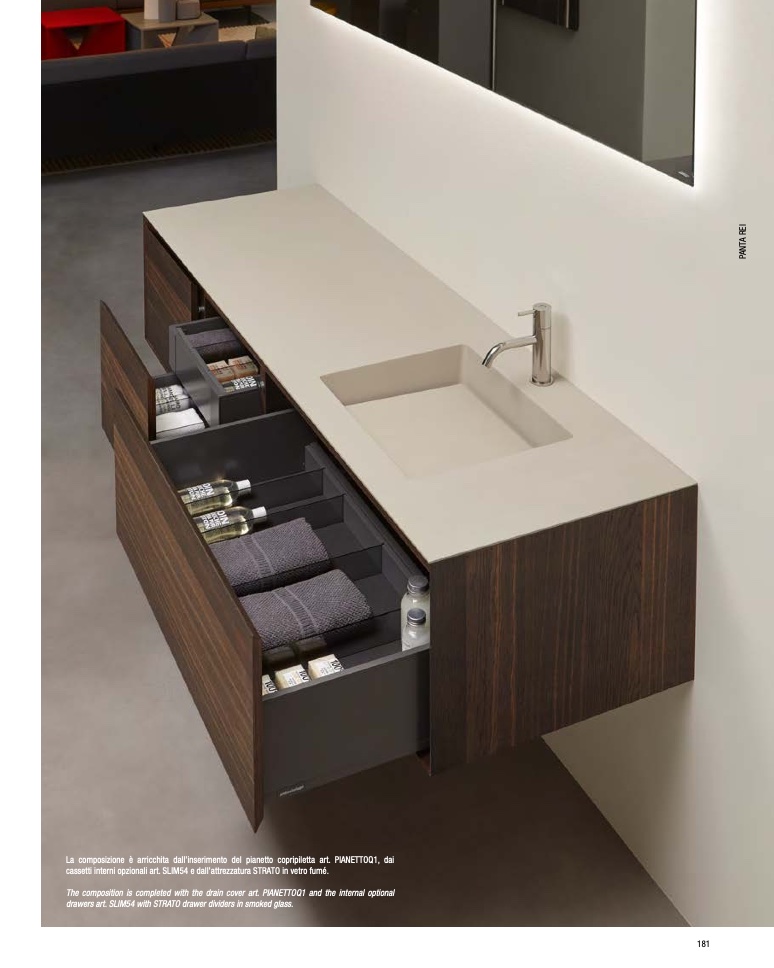 cassetti interni opzionali art. SLIM54 e dall’attrezzatura STRATO in vetro fumé.