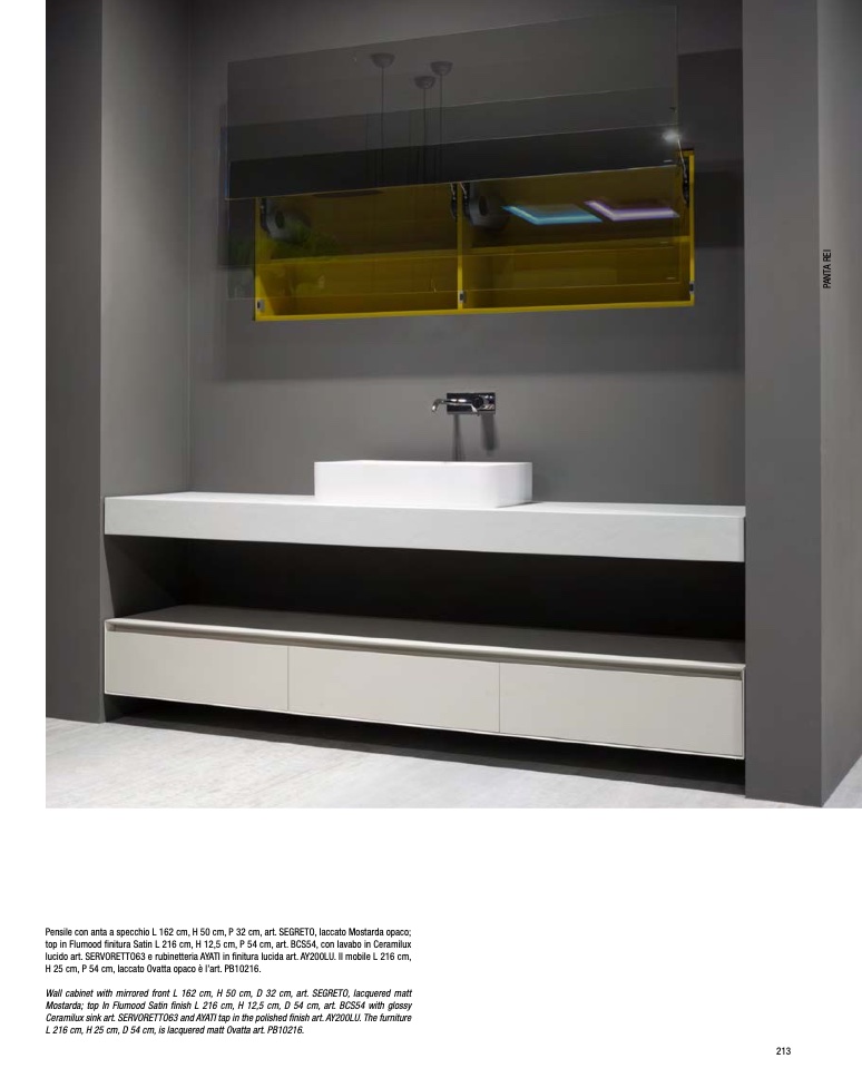 lucido art. SERVORETTO63 e rubinetteria AYATI in finitura lucida art. AY200LU. Il mobile L 216 cm,