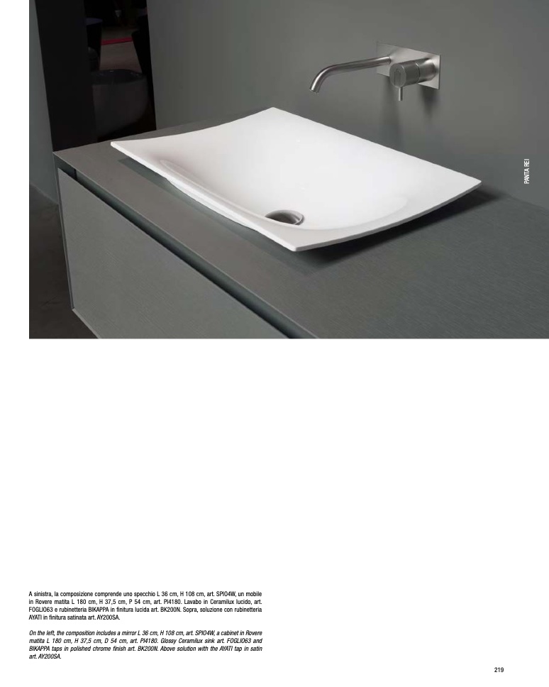 matita L 180 cm, H 37,5 cm, D 54 cm, art. PI4180. Glossy Ceramilux sink art. FOGLIO63 and