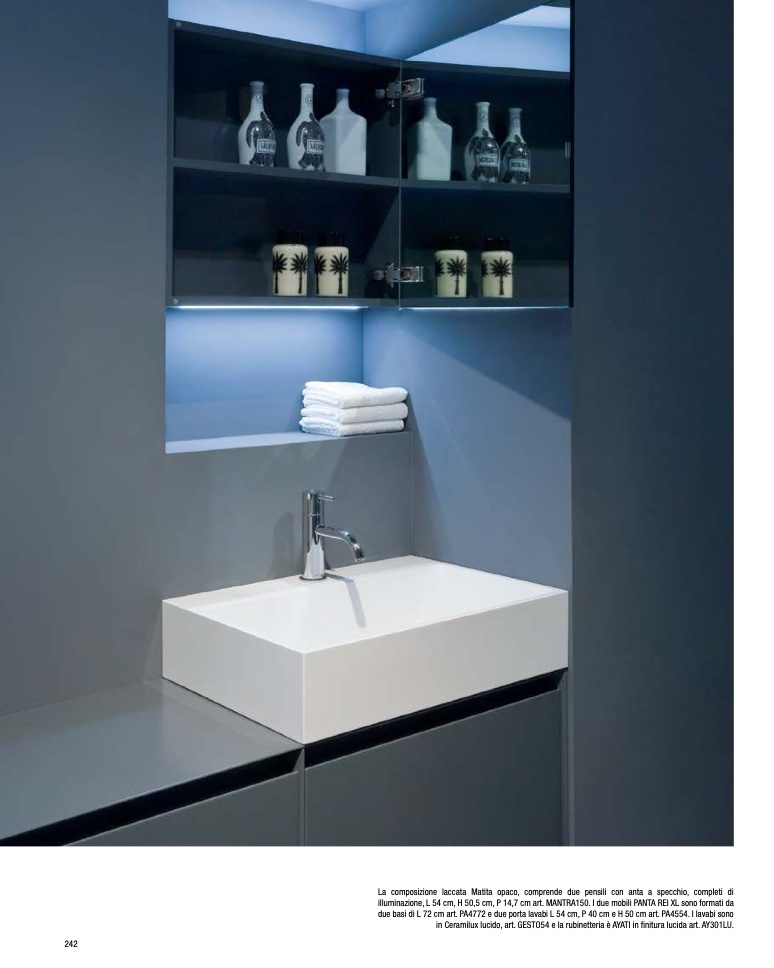 illuminazione, L 54 cm, H 50,5 cm, P 14,7 cm art. MANTRA150. I due mobili PANTA REI XL sono formati da