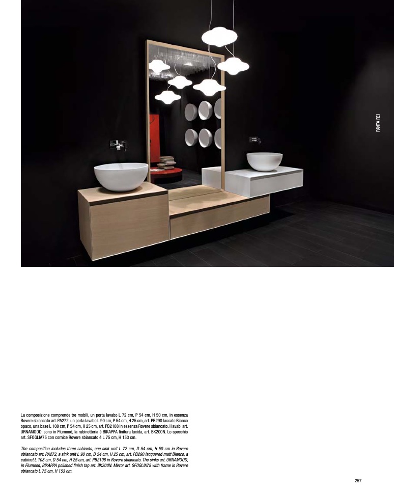 cabinet L 108 cm, D 54 cm, H 25 cm, art. PB2108 in Rovere sbiancato. The sinks art. URNAMOOD,