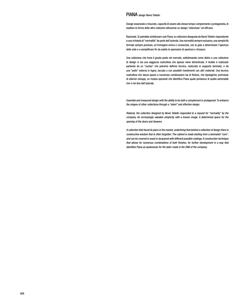 Razionale. Si potrebbe sintetizzare così Piana, la collezione disegnata da Nevio Tellatin rispondendo