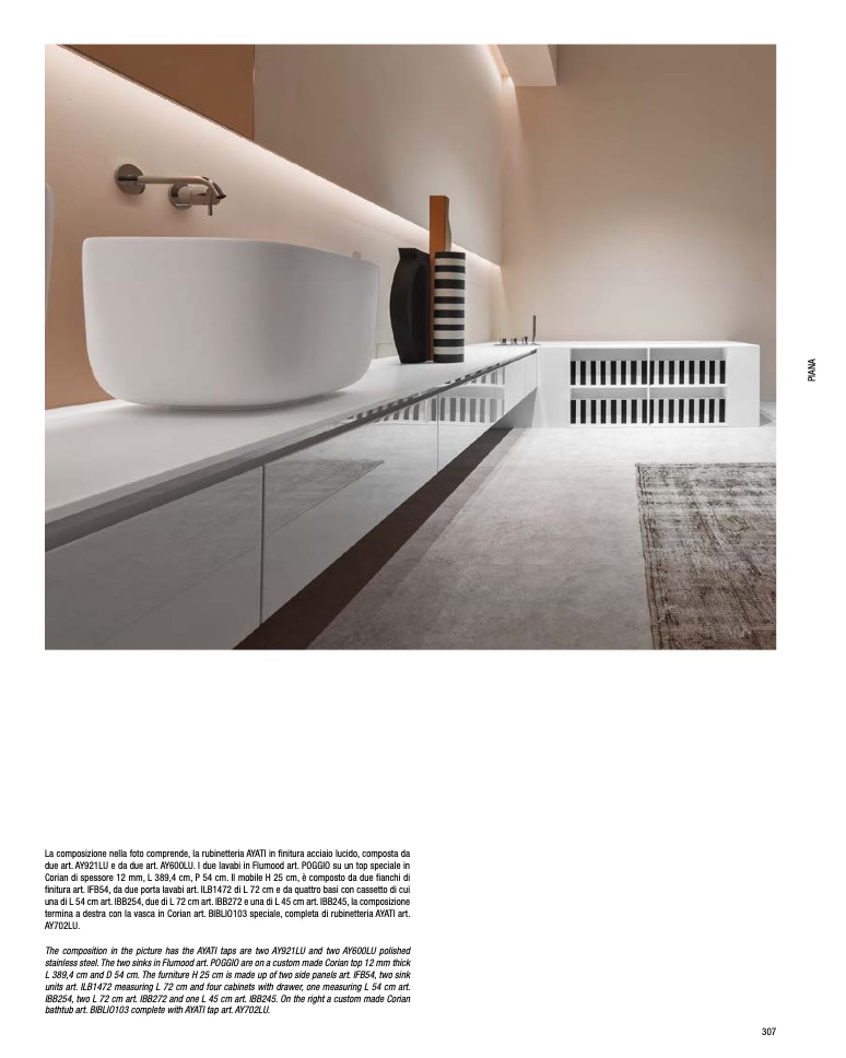 termina a destra con la vasca in Corian art. BIBLIO103 speciale, completa di rubinetteria AYATI art.