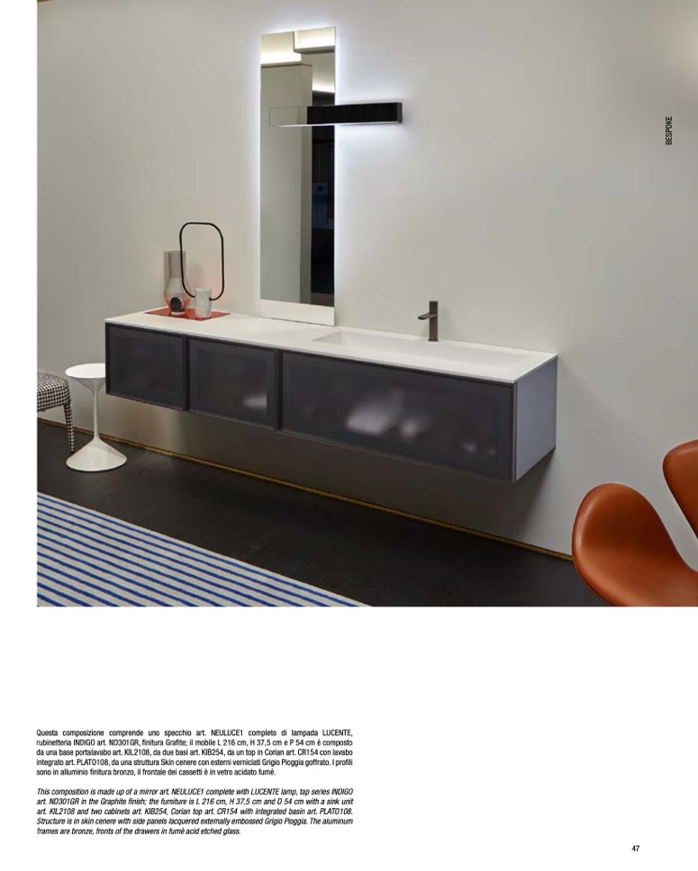 rubinetteria INDIGO art. ND301GR, finitura Grafite; il mobile L 216 cm, H 37,5 cm e P 54 cm è composto