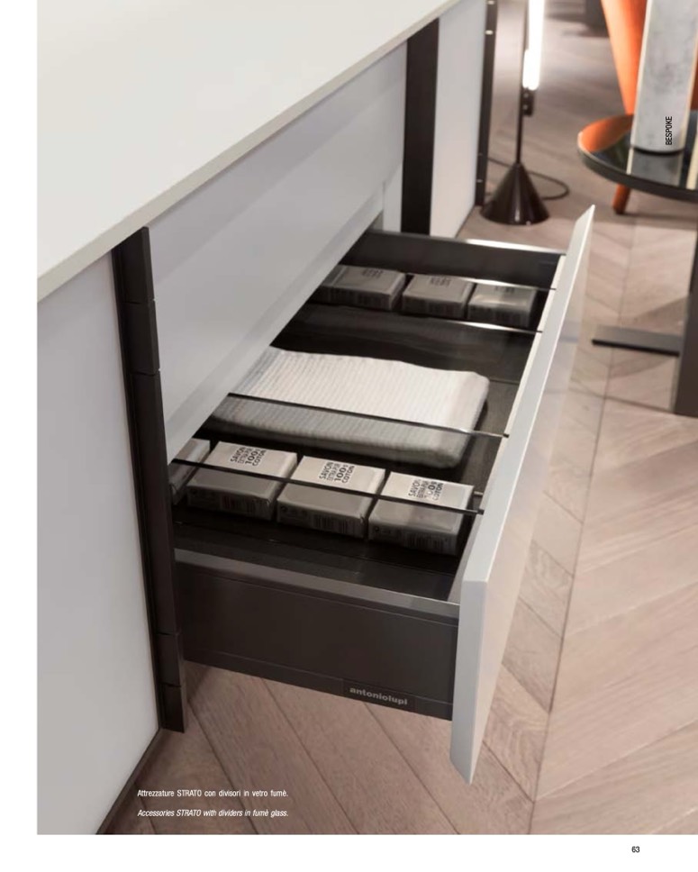 Attrezzature STRATO con divisori in vetro fumè.
