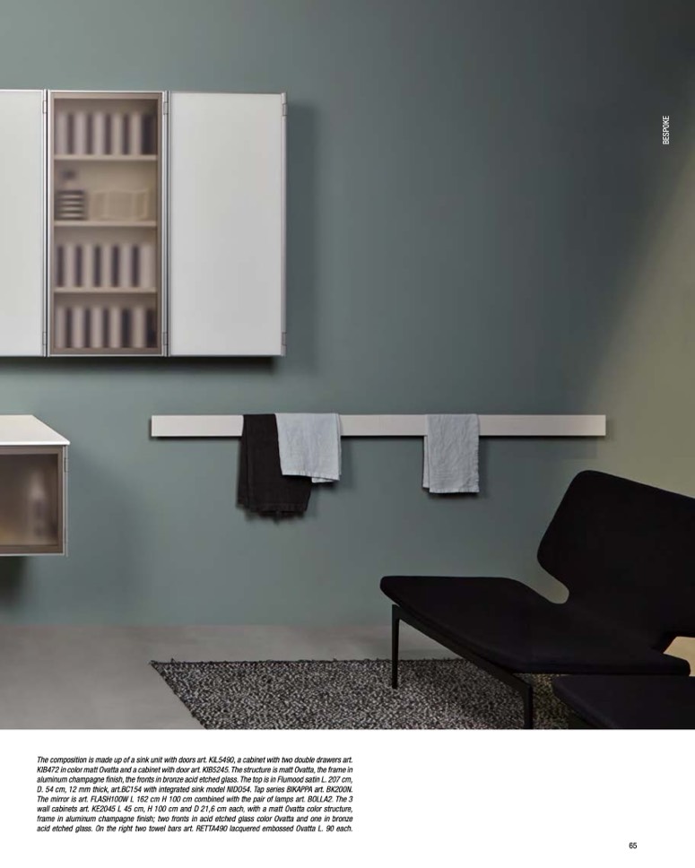 acid etched glass. On the right two towel bars art. RETTA490 lacquered embossed Ovatta L. 90 each.