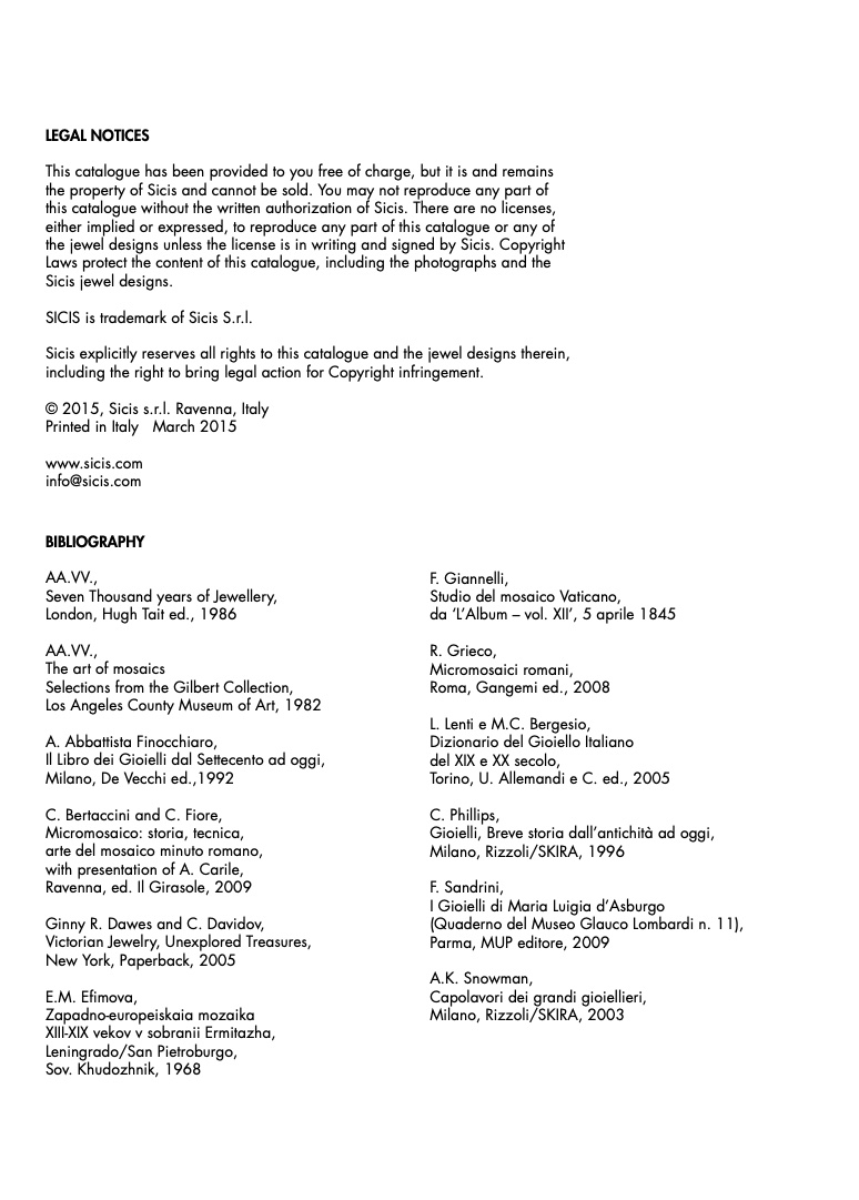 Sicis explicitly reserves all rights to this catalogue and the jewel designs therein,