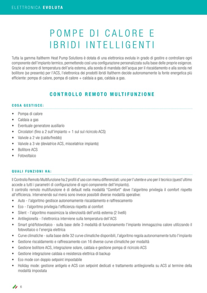 bollitore (se presente) per l’ACS, l’elettronica dei prodotti ibridi Italtherm decide autonomamente la fonte energetica più