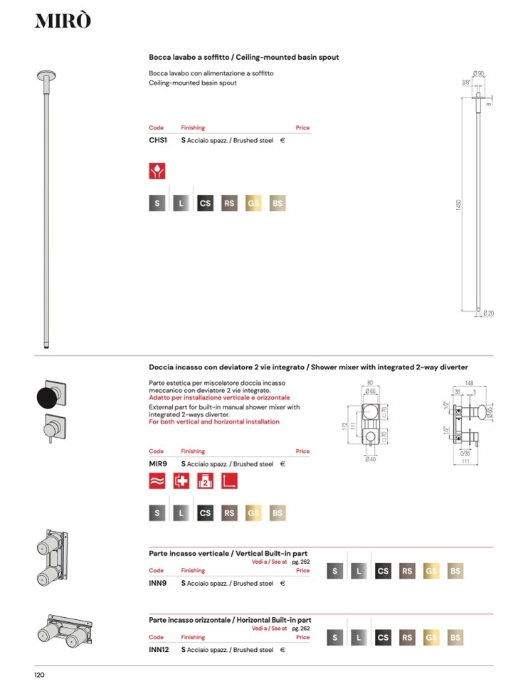 Doccia incasso con deviatore 2 vie integrato / Shower mixer with integrated 2-way diverter
