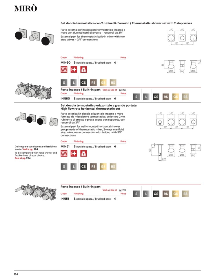 Set doccia termostatico con 2 rubinetti d’arresto / Thermostatic shower set with 2 stop valves