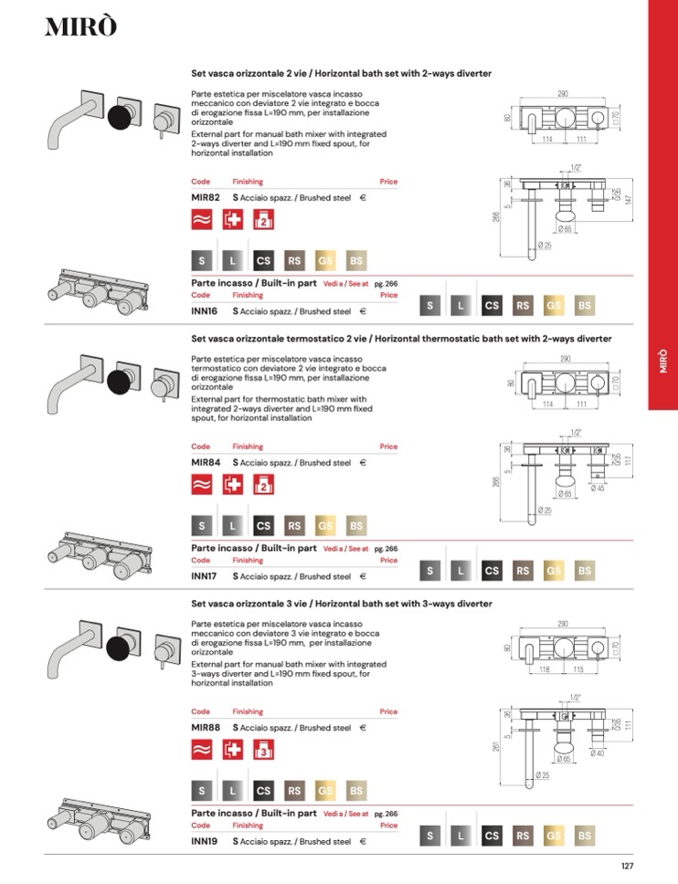 Set vasca orizzontale termostatico 2 vie / Horizontal thermostatic bath set with 2-ways diverter