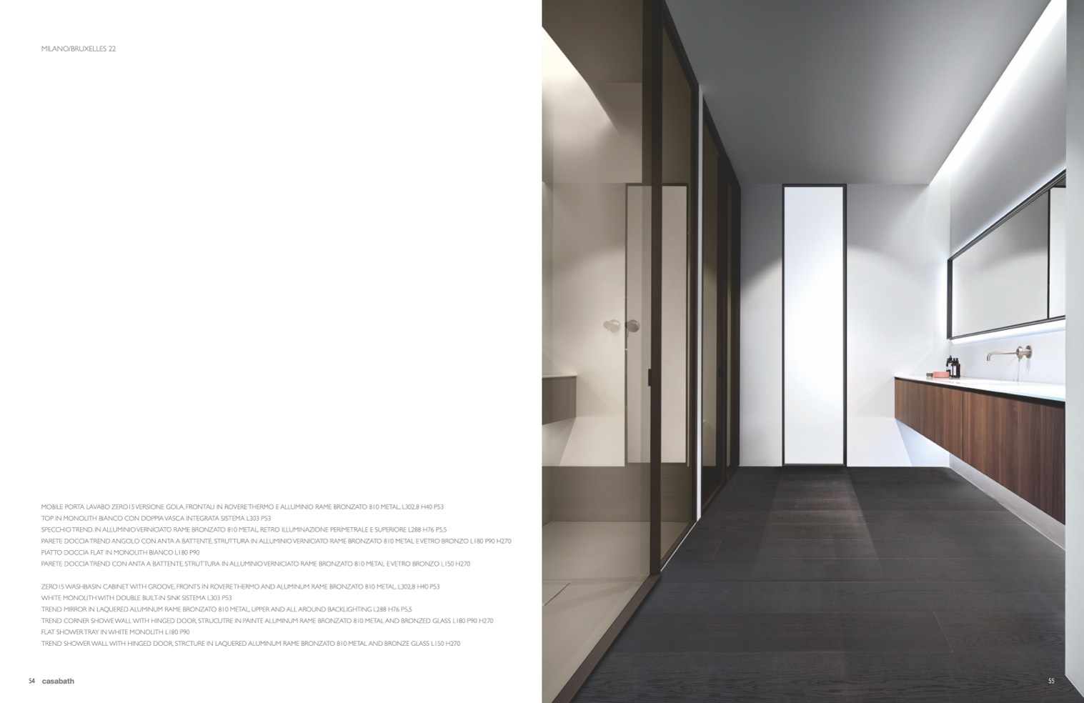 TREND SHOWER WALL WITH HINGED DOOR, STRCTURE IN LAQUERED ALUMINUM RAME BRONZATO 810 METAL AND BRONZE GLASS L150 H270