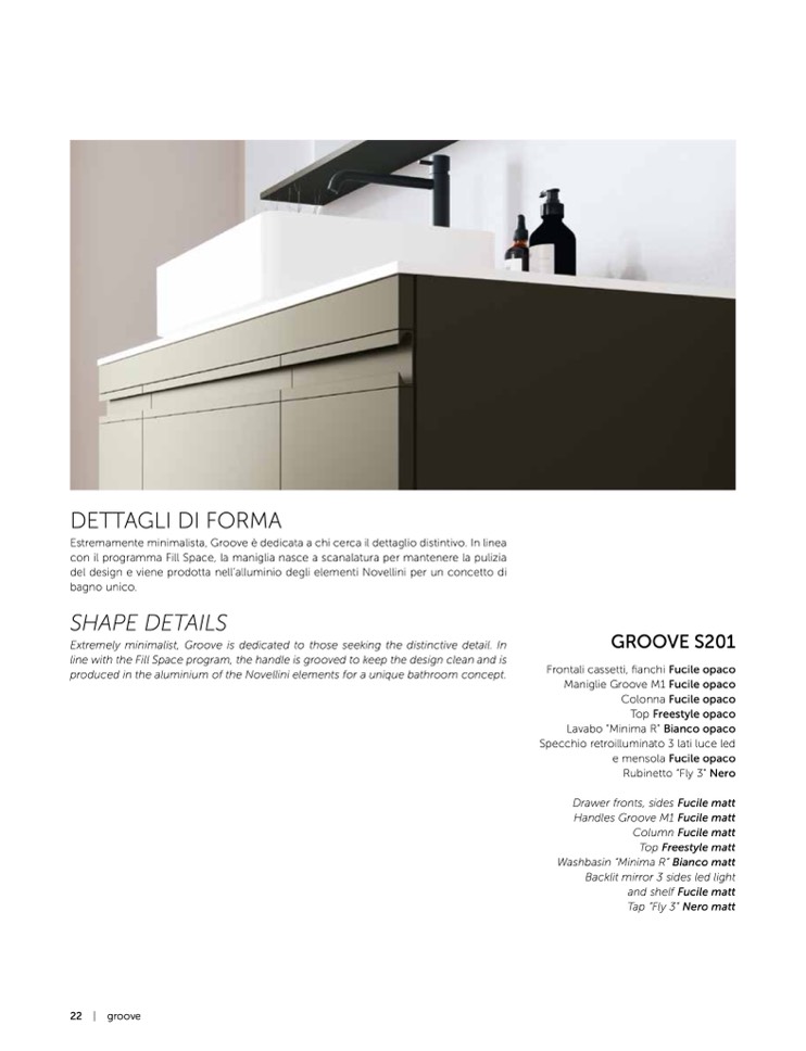 line with the Fill Space program, the handle is grooved to keep the design clean and is