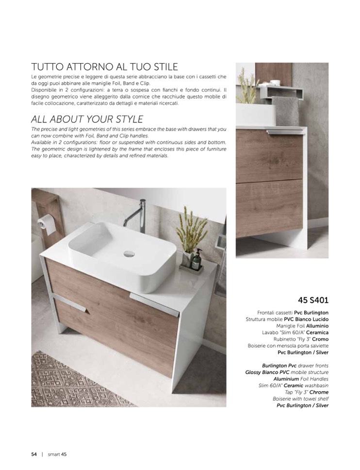 Disponibile in 2 configurazioni: a terra o sospesa con fianchi e fondo continui. Il