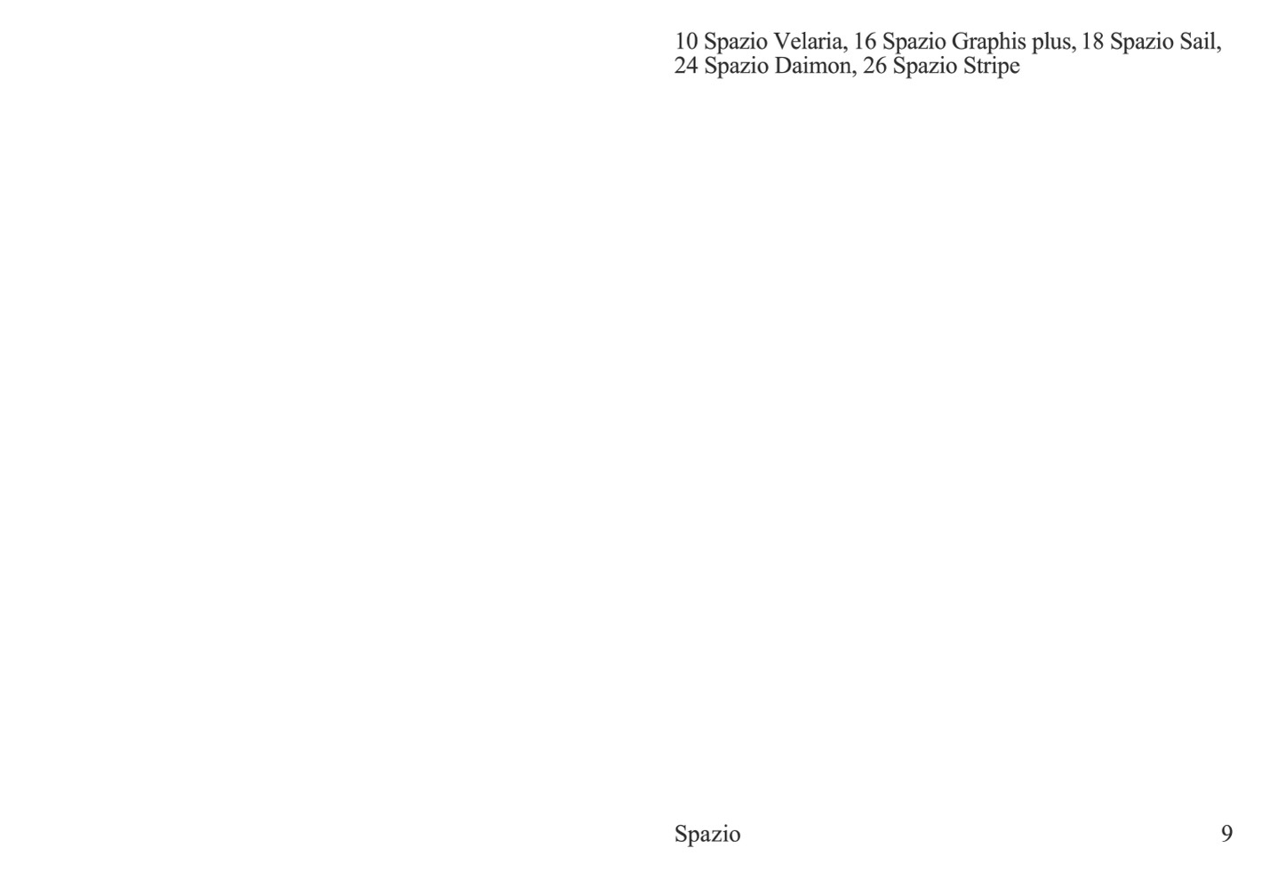 10 Spazio Velaria, 16 Spazio Graphis plus, 18 Spazio Sail,