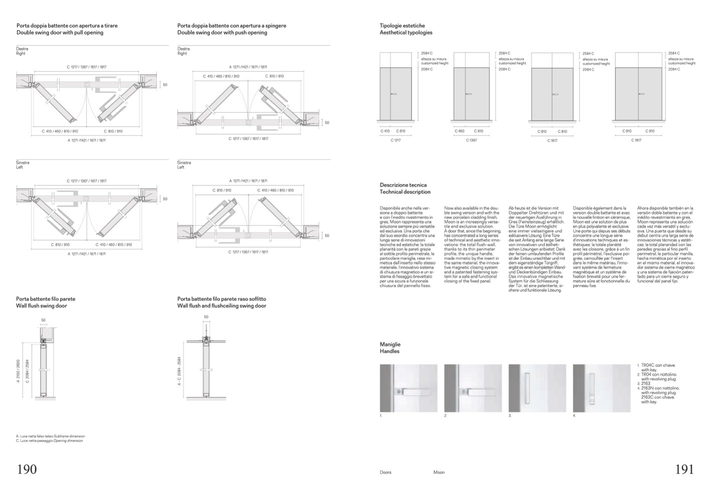Wall flush and flushceiling swing door
