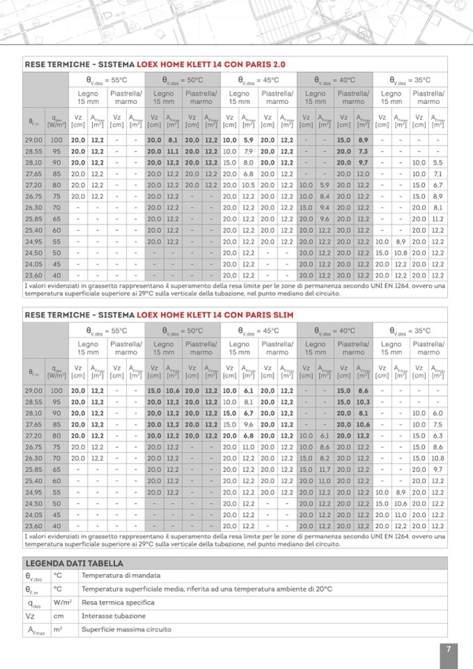 I valori evidenziati in grassetto rappresentano il superamento della resa limite per le zone di permanenza secondo