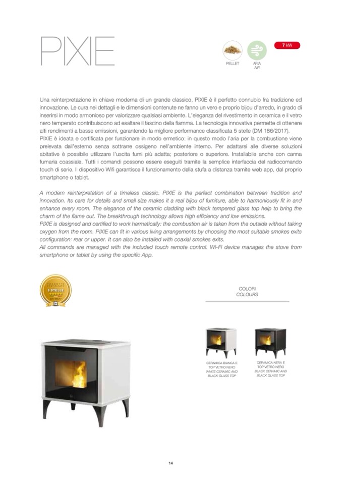 PIXIE is designed and certified to work hermetically: the combustion air is taken from the outside without taking