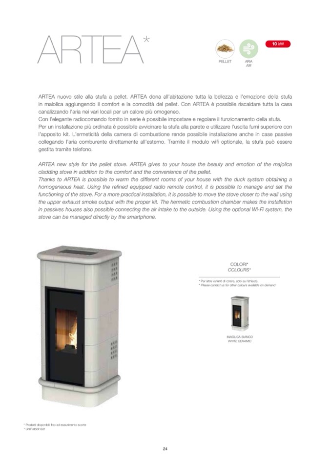 in maiolica aggiungendo il comfort e la comodità del pellet. Con ARTEA è possibile riscaldare tutta la casa