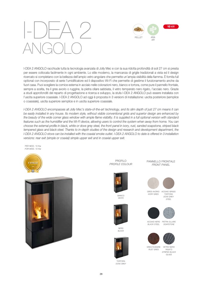 a studi approfonditi del reparto di progettazione e ricerca e sviluppo, la stufa I-DEA 2 ANGOLO può essere installata con