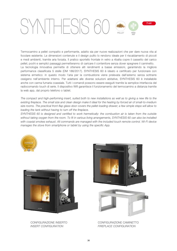 performance classificata 5 stelle (DM 186/2017). SYNTHESIS 60 è ideato e certificato per funzionare con