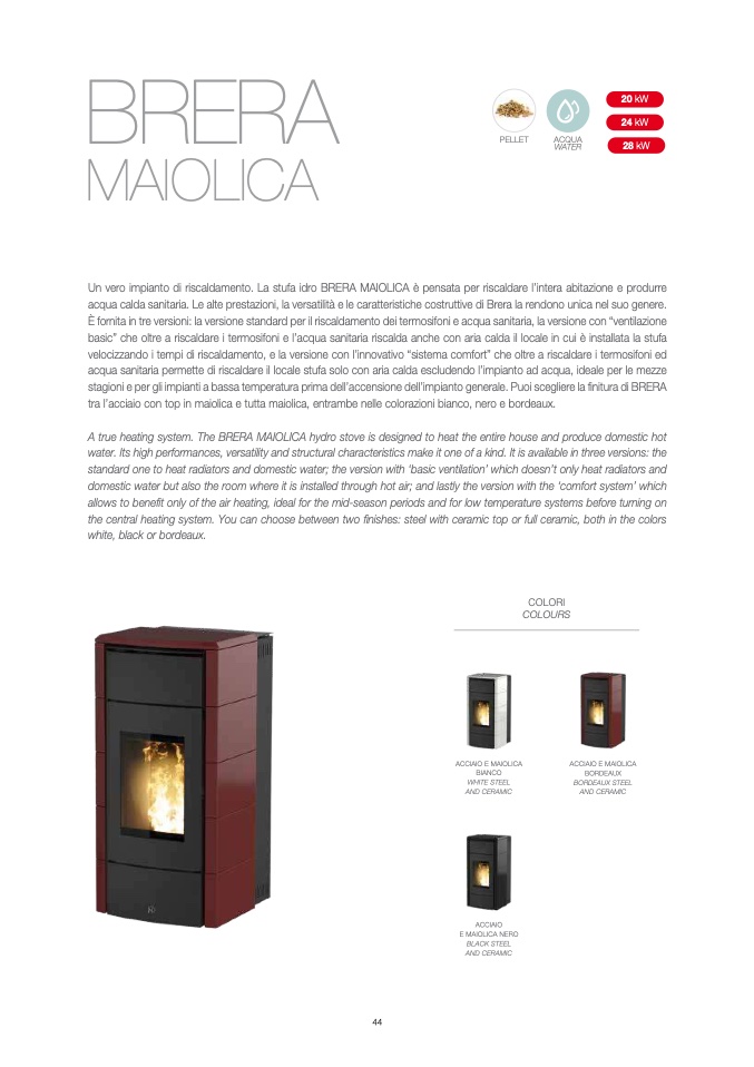 A true heating system. The BRERA MAIOLICA hydro stove is designed to heat the entire house and produce domestic hot