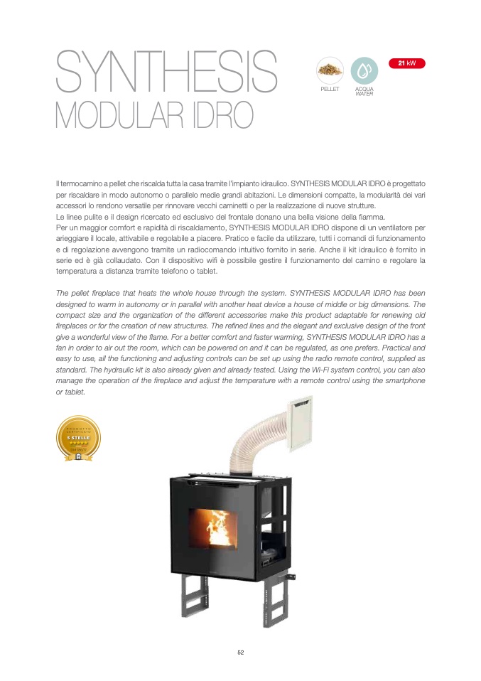 give a wonderful view of the flame. For a better comfort and faster warming, SYNTHESIS MODULAR IDRO has a