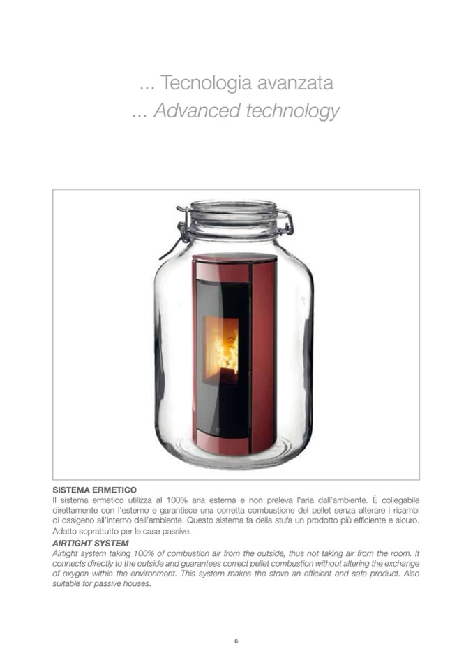 di ossigeno all’interno dell’ambiente. Questo sistema fa della stufa un prodotto più efficiente e sicuro.