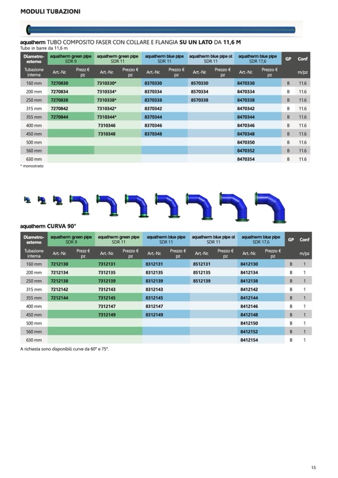 aquatherm TUBO COMPOSITO FASER CON COLLARE E FLANGIA SU UN LATO DA 11,6 M