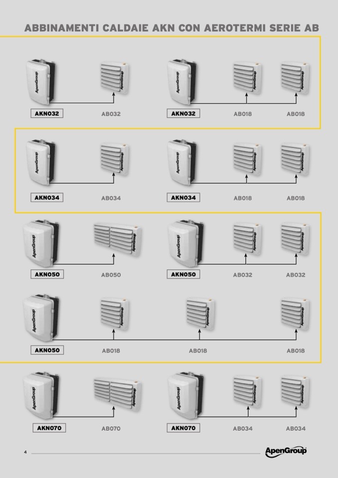 ABBINAMENTI CALDAIE AKN CON AEROTERMI SERIE AB