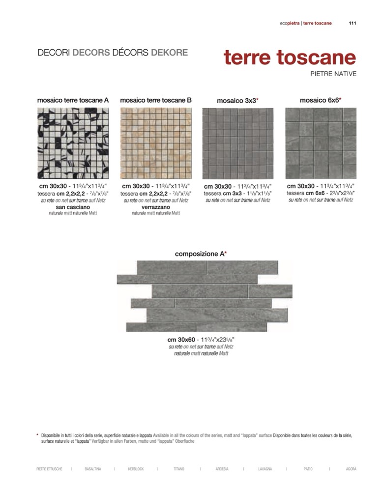 surface naturelle et “lappata” Verfügbar in allen Farben, matte und “lappata” Oberflache