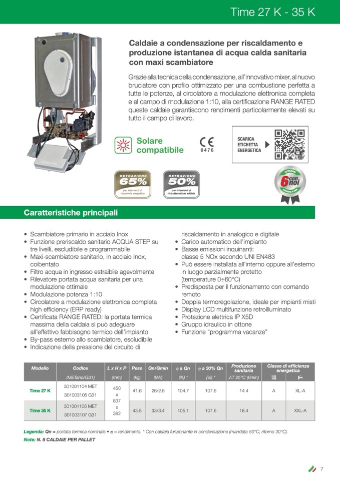 Legenda: Qn = portata termica nominale • η = rendimento. * Con caldaia funzionante in condensazione (mandata 50°C; ritorno 30°C).