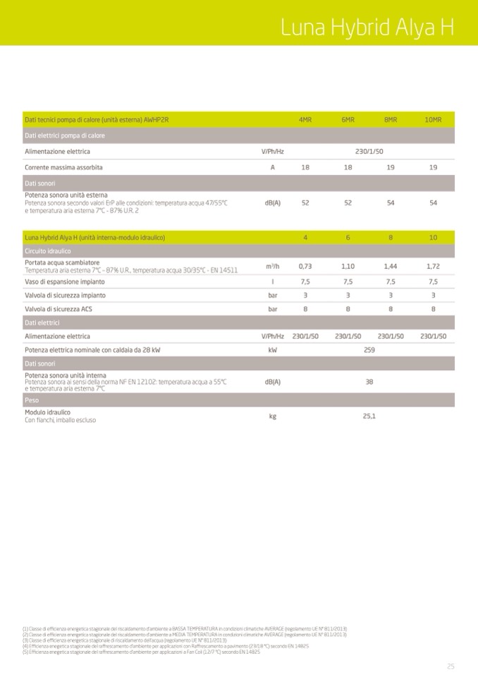 (5) Efficienza enegetica stagionale del raffrescamento d'ambiente per applicazioni a Fan Coil (12/7 °C) secondo EN 14825