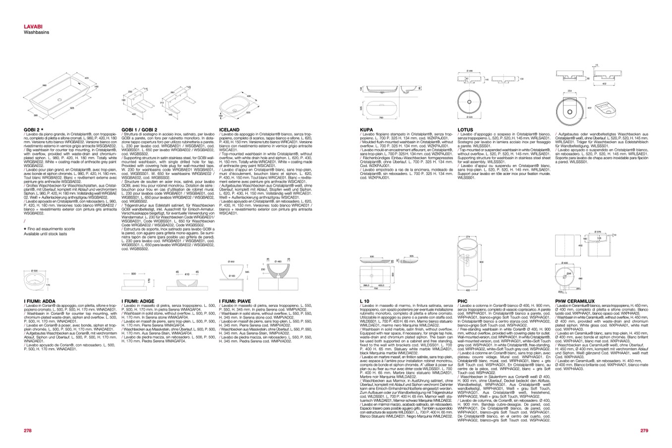 L. 230 per lavabo cod. WRGBAE01 / WSGBAE01, cod.