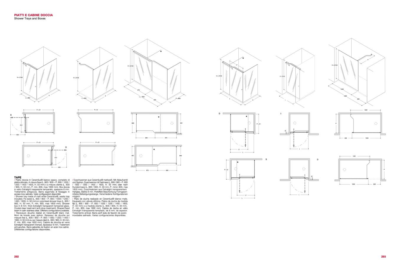 / 900, H. 50 mm, P. min. 800, max 1600 mm). Box doccia