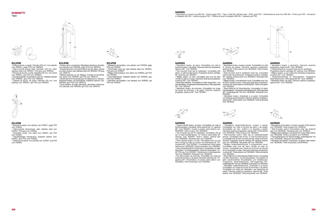 / Rubinetteria in acciaio inox AISI 304 - Finitura grigio PVD. / Taps in AISI 304 stainless steel - Finish: grey PVD. / Robinetterie en acier inox AISI 304 - Finition gris PVD. / Armaturen