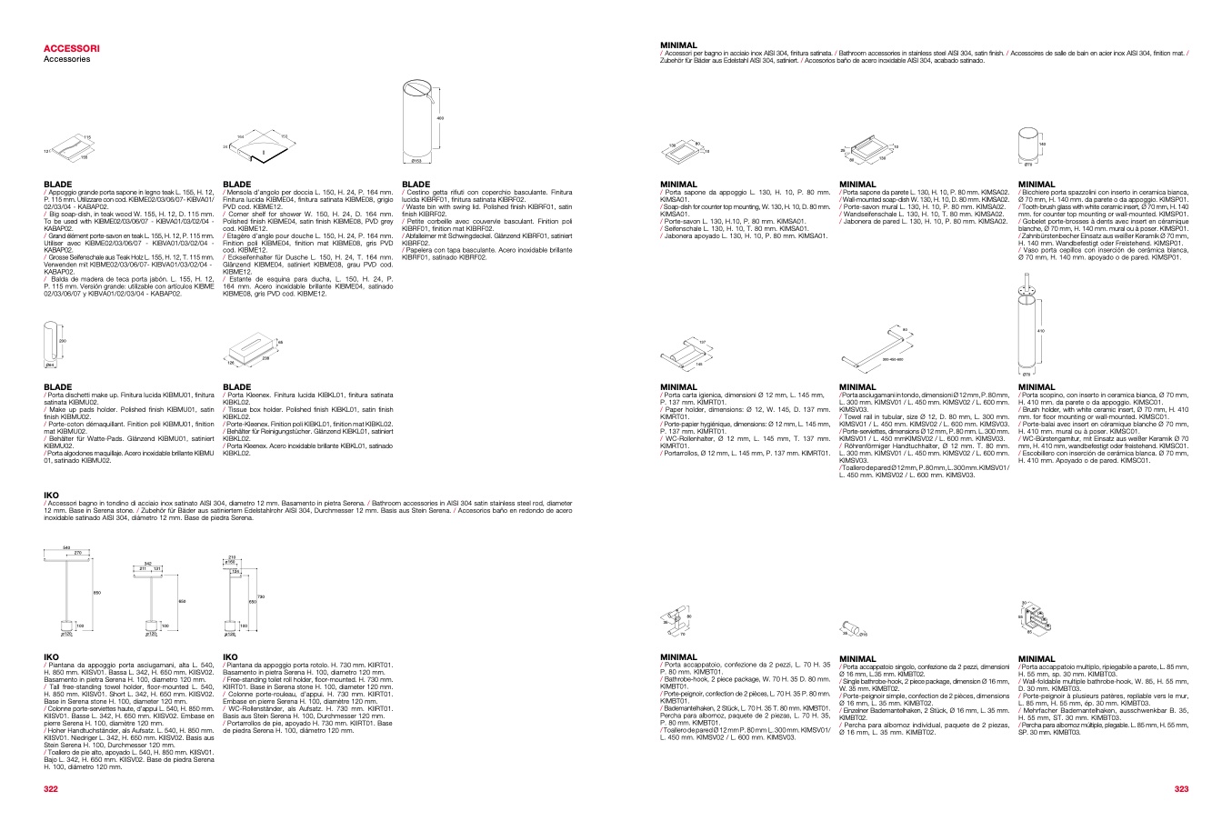 Zubehör für Bäder aus Edelstahl AISI 304, satiniert. / Accesorios baño de