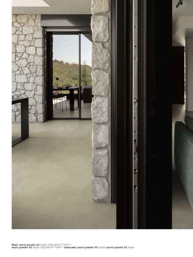 warm powder 02 matte 120x240 471/4”x941/2” staircase: warm powder 02 matte/ warm powder 03 matte
