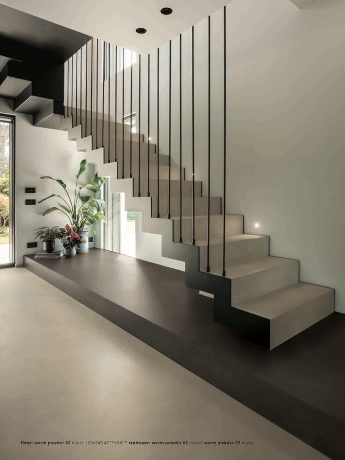 r: warm powder 02 matte 120x240 471/4”x941/2” staircase: warm powder 02 matte/ warm powder 03 matte