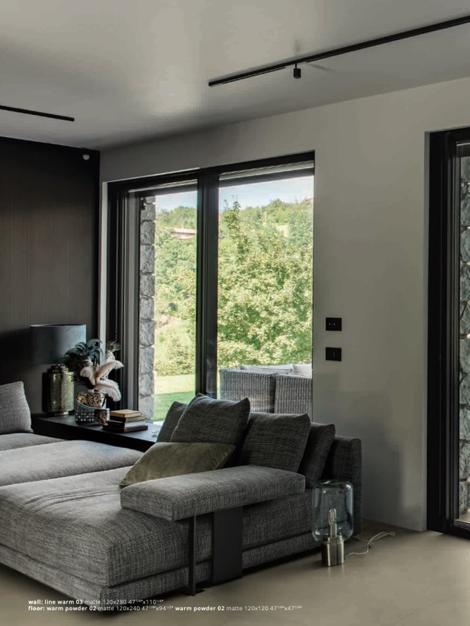 floor: warm powder 02 matte 120x240 471/4”x941/2” warm powder 02 matte 120x120 471/4”x471/4”