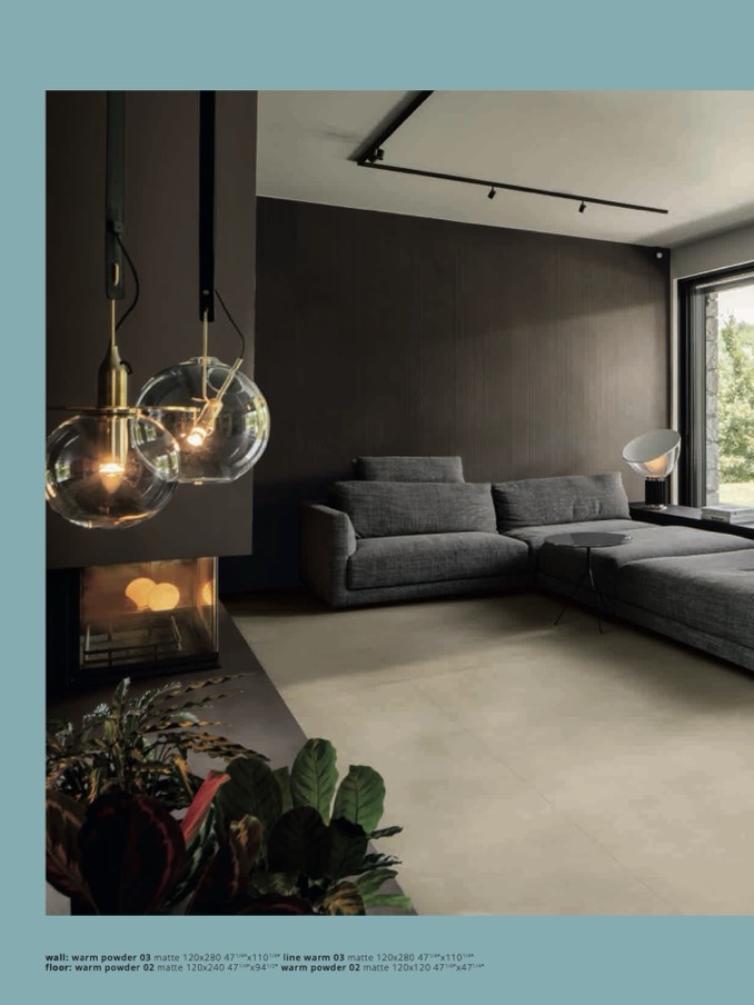 floor: warm powder 02 matte 120x240 471/4”x941/2” warm powder 02 matte 120x120 471/4”x471/4”
