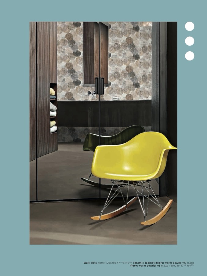 wall: dots matte 120x280 471/4”x1101/4” ceramic cabinet doors: warm powder 03 matt