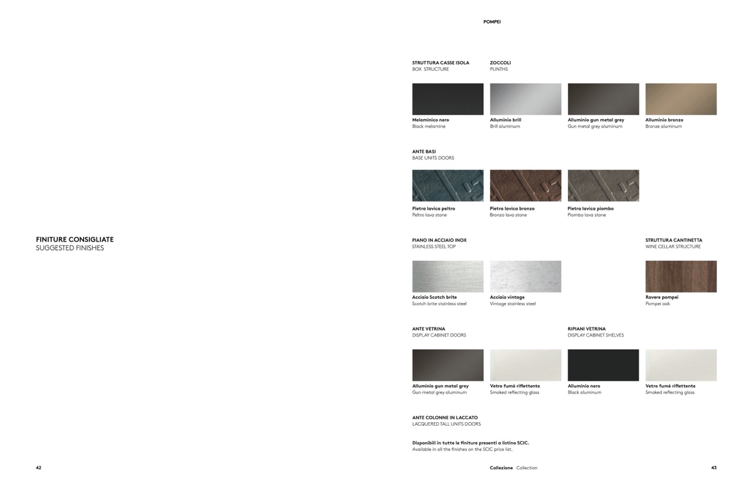 Disponibili in tutte le finiture presenti a listino SCIC.